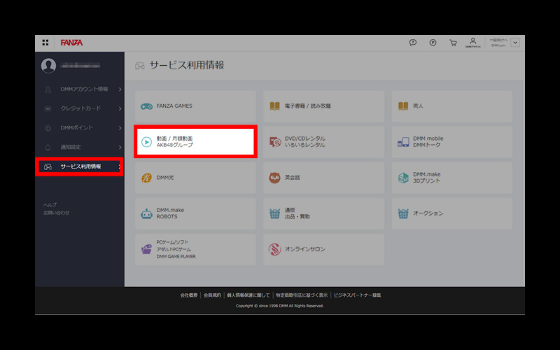 見放題chの退会は『DMMアカウント情報』⇒『サービス利用情報』⇒『動画』から解約する事ができます。